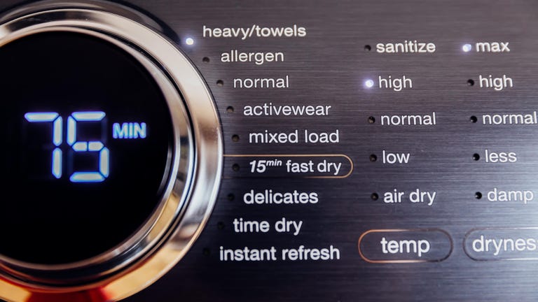 The machine also comes with steam modes for refreshing and dewrinkling laundry items. Other settings you can tweak include cycle temperature and your desired dryness level. You can choose high sanitizing heat, or air-dry with just cool air. Likewise you can set it to run until the fabric is bone-dry, or purposely leave your clothes damp.Â