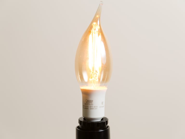 At $9 each, Feit's vintage-style LED is a good example of why it probably makes more sense to stick it out with halogens, fluorescents or actual incandescents for a little while longer. The candelabra LED category has some catching up to do.