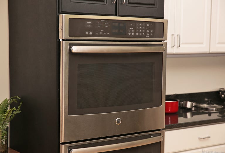 The upper and lower ovens both offer 5-cubic-foot capacities. That's pretty big for a double oven -- the $4,999 Dacor Renaissance 30-inch Double Wall Oven RO230S we're currently testing has two 4.8-cubic-foo-capacity ovens. The Electrolux EW30EW65GS double oven has 4.2-cubic-foot capacities, the Bosch HBL5650UC double oven has 4.7 cubic-foot capacities, and the KitchenAid KEBS209BSP and Whirlpool WOD93EC0AS double ovens both have 5-cubic-foot capacities like the GE double oven. The GE's display panel is a glass touchscreen. Overall, the oven has a sophisticated, understated design. It won't make much of a statement, but it will blend in nicely with a modern kitchen.
