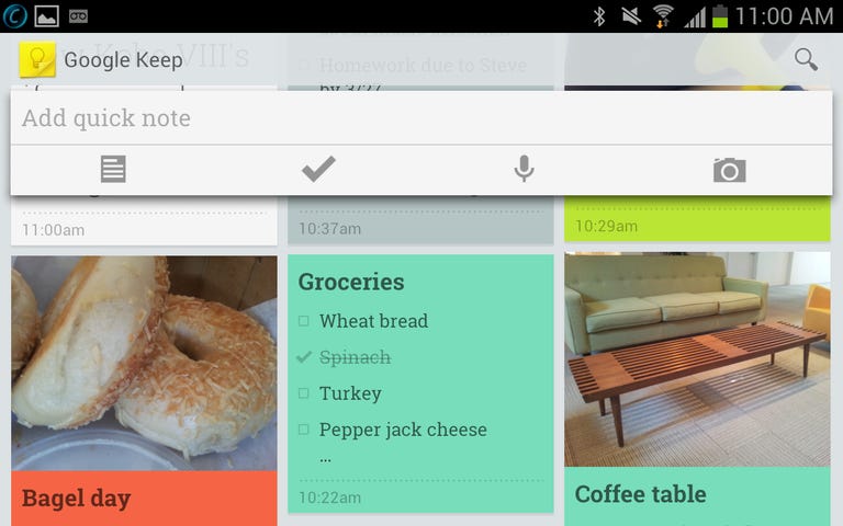 Even though Google Keep clearly has a lot of kinks to work out, I actually love its simplicity. I appreciate the home screen widget from which I can quickly create text and photo notes. And I feel more compelled to use the app regularly, since I know that it won't ask me to tag or categorize things. That said, if you're looking for anything beyond a basic note-taker then look elsewhere.