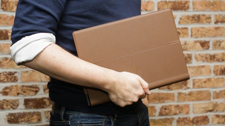 The leather cover is not just bolted on top of a standard laptop body. Instead, a magnesium frame is paired with a leather outer shell that covers just about everything except for the keyboard and screen. HP says that cuts down on weight and thickness, although this still feels hefty for a 13-inch laptop, at 3.3 pounds (1.5 kg).