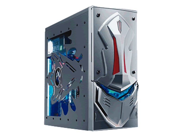 Most hard-core gamers want a system that provides not only bleeding-edge performance, but also one that gives them bragging rights. The $2,895 iBuyPower Gamer Extreme delivers on both counts, combining some of the fastest components on the planet with a case that's sure to inspire awe among the LAN-party set. The system features a state-of-the-art AMD processor, Nvidia's latest-and-greatest video card, endless storage space, and even Wi-Fi networking. Its monitor and speakers are merely average, but we still think gamers are likely to love this machine, if only for its unique looks and blazing speed. A boutique case in the truest sense, the iBuyPower Gamer Extreme's striking silver Nzxt Guardian tower is the same case that came with an earlier version we reviewed in the beginning of the year. A three-dimensional, daggerlike grille adorns the front, while the side panel continues the motif with neon lighting that glows through curvy windowed cutouts. The front panel looks even more outlandish when the system is running: an inset plastic gem lights up red when there's hard drive activity, while a blue LED slowly oscillates across the face, Cylon-style--for those of you who remember Battlestar Galactica. If you're not onboard with the sci-fi looks, the Gamer Extreme configuration gives you a choice of other, more understated cases.