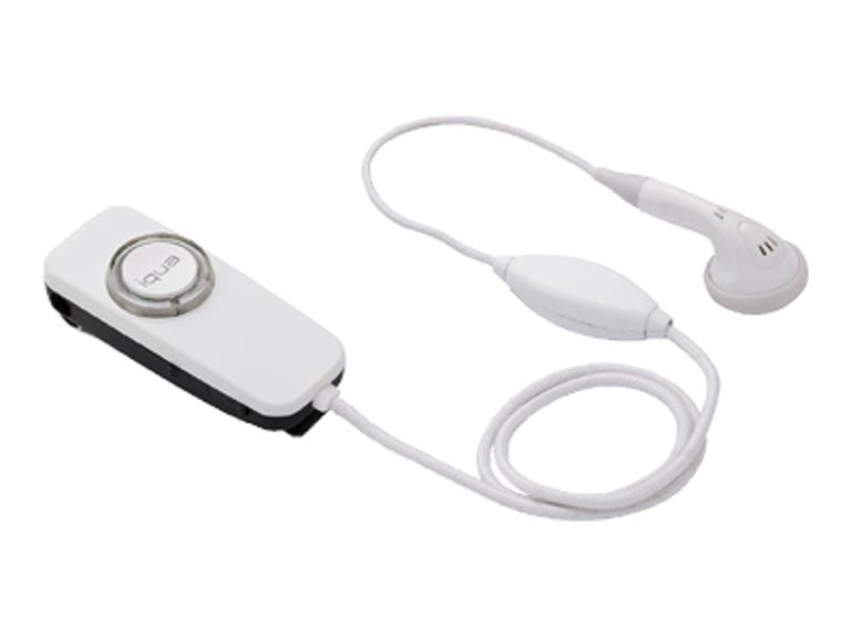 As we mentioned, the Iqua BHS-302 is more like a Bluetooth clip than a headset. The device clip, which houses all the controls plus the battery, is connected via a ropelike wire to a microphone as well as the wired earpiece. This clip is rather small, measuring only 2 inches long, 0.75-inch wide, and 0.35-inch deep, and it comes in white, black, and silver. Right on the front is the multifunction button. It is substantially raised above the surface, with a concave curve in the middle that is designed to fit the curve of a finger. The button is a bit stiff and requires a bit of a push but it has enough give that it didn't feel like we were forcing it.