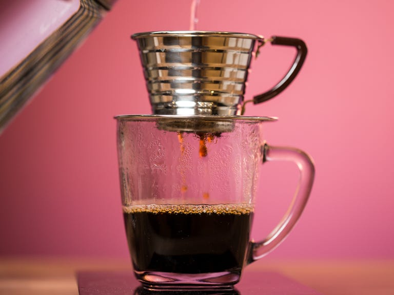 The Kalita Wave 155 is a deceptively simple device. The tiny coffee maker consists of just one main part, a stainless-steel funnel designed to hold paper filters for ground coffee. Built to brew a single cup of coffee, the Wave 155 is Kalita's smallest drip coffee maker. The company also sells a $38 Wave 185 that can produce double the volume of brewed coffee.