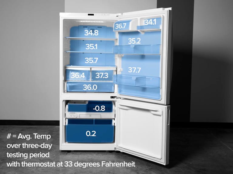 The Kenmore 78022 was a very steady performer in our climate-controlled test chamber, with almost identical results to what we saw from the LG LDC24370ST, one of the best performers we've tested. Set to 37 degrees F, the fridge yielded tight averages across all regions, with no worrisome hot spots to speak of. The middle of the door and the right crisper bin crept slightly above 40, a benchmark for food safety set by the FDA, but not nearly enough to have us concerned.