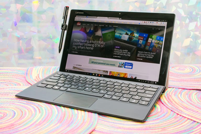 Both tablets have a single standard USB 3.0 port and a combo headphone-and-mic jack, but the Surface adds a microSD card slot. Not having a microSD card slot may not be a deal breaker, but the Lenovo's lower-resolution screen could be. It's got a 12.2-inch 1,920x1,200-pixel display compared to the Pro 4's 12.3-inch 2,736x1,824-pixel resolution display. Side by side, the Surface's display is sharper looking and generally looks better from close up and farther away. For the price difference, though, it's not that much better.