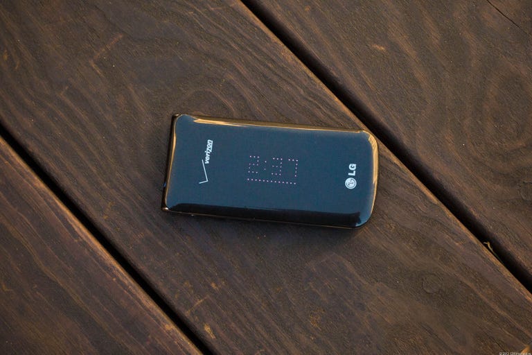 On the outside, there is no obvious external display. However, once you press any of the side buttons, moving LED lights will shine from underneath the device's black surface and the time will appear. We've seen this before, with the LG dLite, but it's still a stylish addition. The lights can also show you when you have a missed call or get a text message. If you receive an incoming call from an unblocked number, the lights will also scroll the number though, similar to a news ticker.