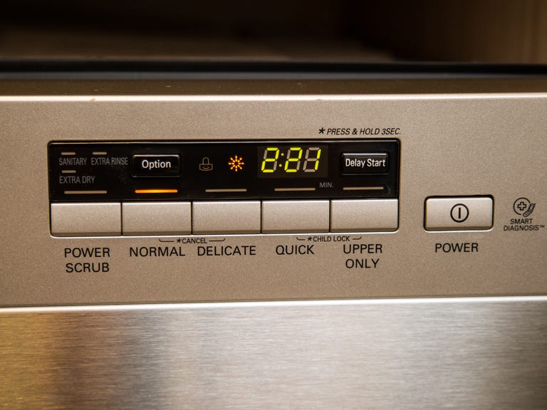 The lack of a start button threw me off, but it's typical of the LG dishwashers we've tested so far. Pick your cycle, use the Option button to select if you want Sanitary, Extra Rinse, or Extra Dry. From there, just close the door and the dishwasher will whir into action. The countdown timer on the control panel stays illuminated throughout the run so you always have an estimate of how much time remains.