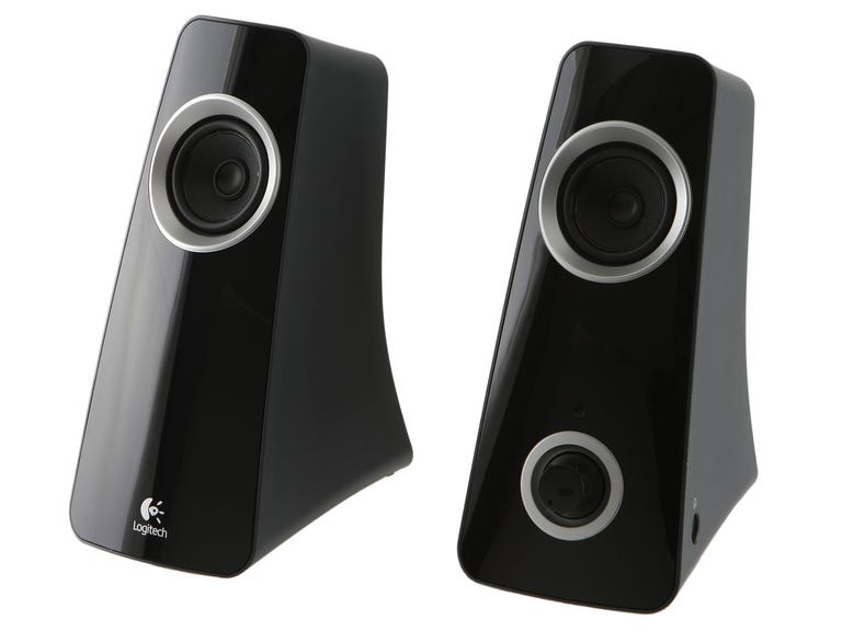 In our search for an adjective to describe the Z320's design, the first thing came to mind is "classy." The speakers have a clean look and high-gloss black fronts that slope back at an angle so the speakers fire upward at your head if you're sitting at your computer. It's worth noting that the speakers have no grille cover to protect the drivers, which may be a problem it you have young children who like to poke things. Yes, that glossy finish is a fingerprint magnet, but unless you're constantly reshuffling the speakers on your desk, it shouldn't be a problem.