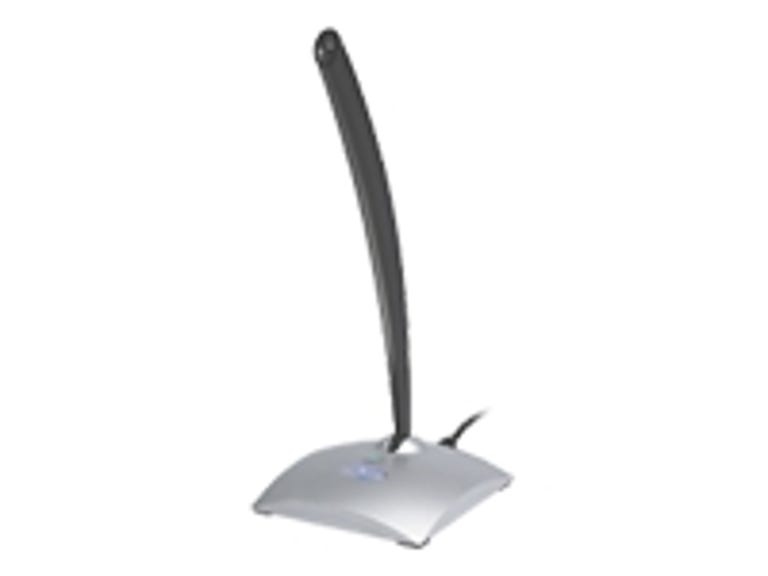 With a stylish and compact design, the Logitech USB Desktop Microphone looks like minimalist sculpture. Rather than being a mere desk ornament, though, the noise-cancelling, adjustable-angle microphone records vocal tracks that sound rich and full--when played back through a computer. We were less than impressed by the sound quality when we recorded vocal tracks for a DVD narration, and the mic's performance with speech-recognition software left a bit to be desired. For anyone looking to get started in podcasting or voice chatting, though, the $30 Logitech USB Desktop Microphone provides good sound quality and easy setup for a remarkably low price.
