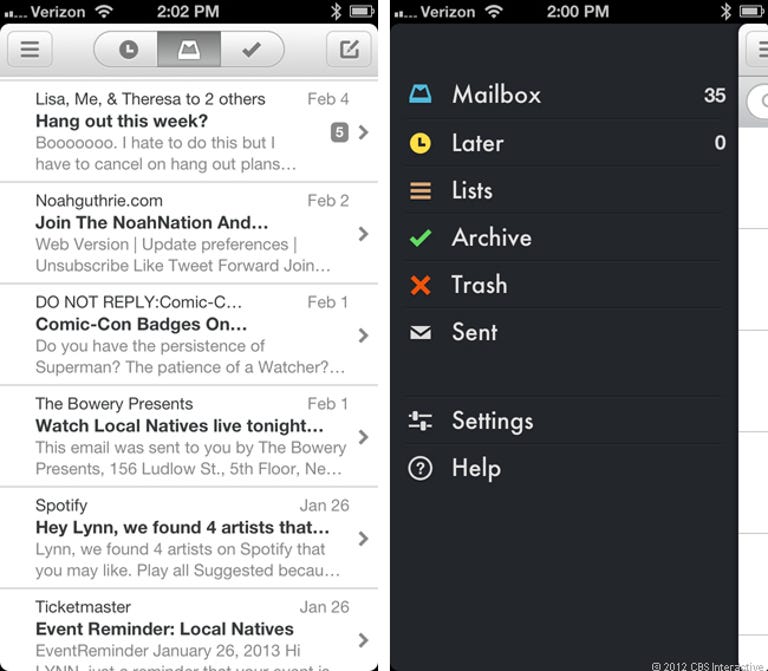 Mailbox's streamlined look keeps the app's overall aesthetic uncluttered. All of its action buttons are icons, which is initially confusing because you don't know what's what, but they make sense after you go through a short tutorial.