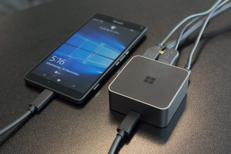 Or you can use the Microsoft Display Dock. This tiny device has a USB-C port at the front to connect your Lumia. On the back, given the 64.1mm width (just 2.5 inches), is an almost dizzying array of ports, including three USB 2.0 ports, an HDMI out, DisplayPort out and another USB-C connection to provide power.