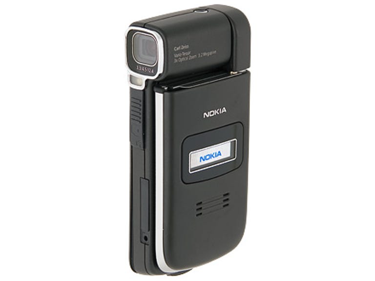 It's essentially a clamshell handset onto which a second swivel has been built. In this it's not unlike its near relation, the N90. On that handset, the lens sat above the clamshell mechanism and could be swivelled independently, but this time round the Carl Zeiss 3.2-megapixel camera lens is fixed into the upper part of the base section of the clam, and the lid section has two swivel options, both of which rely on hinges on its lower right edge.