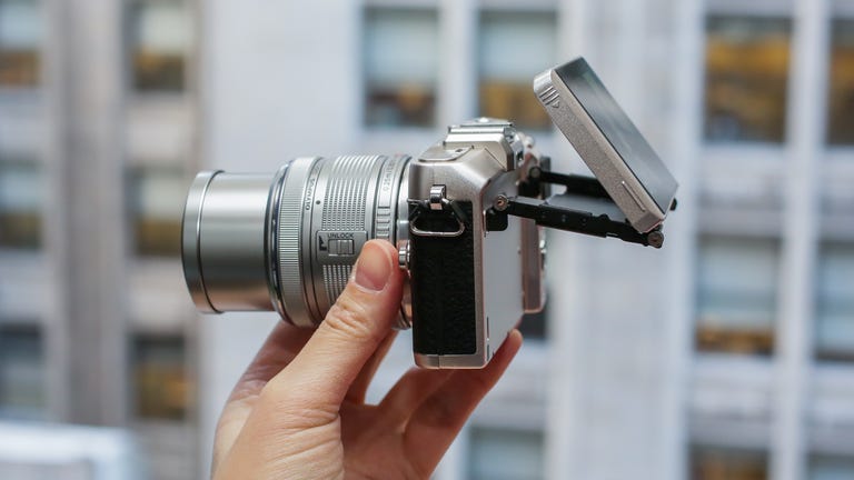 And while the display may be optimally placed for eye contact, with touchscreen controls for snapping photos, if you use the 14-42mm kit lens, the 28mm-equivalent angle of view is too narrow for handheld selfies. Unless you have freakishly long arms or small heads. You need a lens at least 12mm wide for that, and with the exception of the cheapo 9mm body cap lens Olympus' lenses that wide will run you upwards of $500, £350 or AU$500. It's notable that in the manual the example screen for this use case is not a selfie.