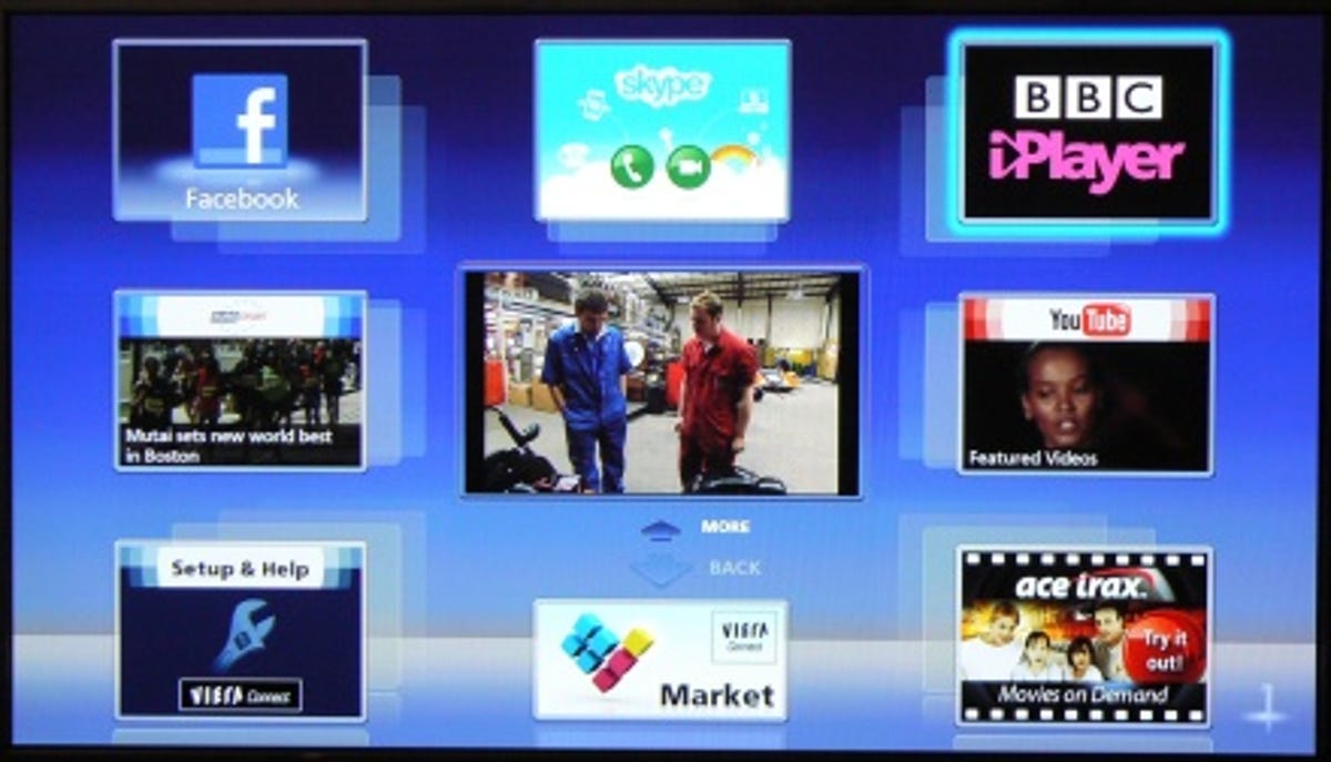 The rear is also home to an Ethernet port, and you can connect via Wi-Fi if you go for the optional USB Wi-Fi dongle. Once connected to your home network, you can make use of Panasonic's new Viera Connect Internet platform. Previous Panasonic sets lacked proper BBC iPlayer integration -- it was available via the red button when you used the satellite tuner, but not if you only used the Freeview HD tuner. Thankfully iPlayer is now properly integrated into the Viera Connect menu.