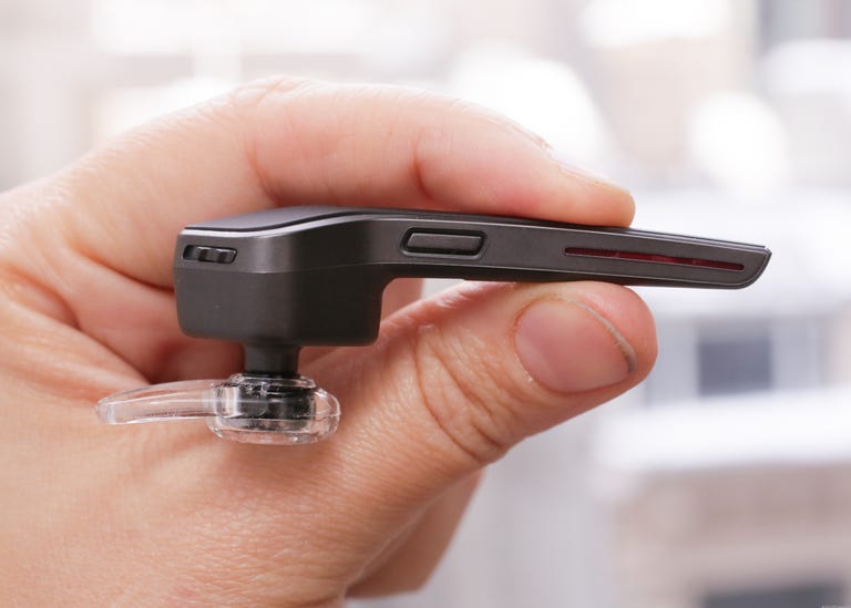Continuing where the 975SE left off, the fresh Voyager Edge has the same distinctive diamond-shaped body. Relatively compact, the Edge sports a long, thin boom, too, which houses its microphone array. It also relies on a design that forgoes a bulky earloop, an approach the Legend and Jabra Motion take. Even though the Edge is a lot smaller than these gadgets, it's nowhere near as tiny as the bite-sized and recently refreshed Jawbone Era. But while the Era lacks any physical controls save for a power switch and multifunction button, the Voyager Edge sports a real volume rocker and voice command key. Like the Era, the Edge uses a standard Mini-USB port for charging up and interfacing with PCs.