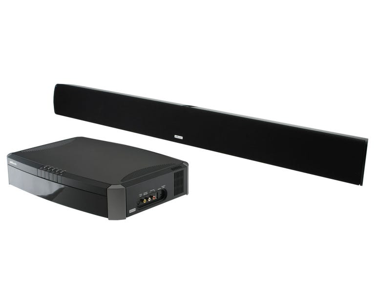 A single 15-foot umbilical cable connects the speaker bar to the head unit, which Polk refers to as a "DVD Console" because it houses the disc player, in addition to all of the electronics and inputs and outputs. The umbilical cable uses proprietary connections, so don't expect to do any DIY extensions. The DVD Console is a reasonably svelte 3.25 inches tall by 16.5 inches wide by 11.5 inches deep--not much larger than a standard DVD player. If you want to keep things simple, you can get away with just the three wires: the speaker cable, the video output to TV (HDMI or otherwise), and a power cord.