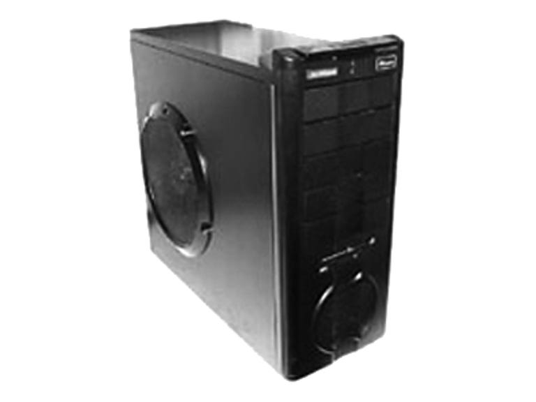 On the outside, the Poly i680SLI doesn't look that remarkable. It has a generic third-party chassis that has some awkward design elements. Its power and reset buttons and all of the frontside ports hide behind an unnecessarily bulky plastic door that sits on the machine's upper front edge. And its fan ports, including the massive 120mm side panel vent, come with blandly stylized plastic trim. Perhaps using an uninspired case helps Polywell keep the costs down, but even a nice case would add only an extra $100 or so.