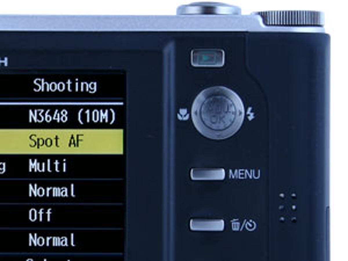 Controls are kept simple: a menu button, delete/timer button, a display toggle and playback button are on the back, with a mode wheel on the top. The wheel gives access to different scenes and two customisable user settings. It's a small thing, but we like that the wheel rotates 360 degrees, even if it does have a gritty feel to the movement.