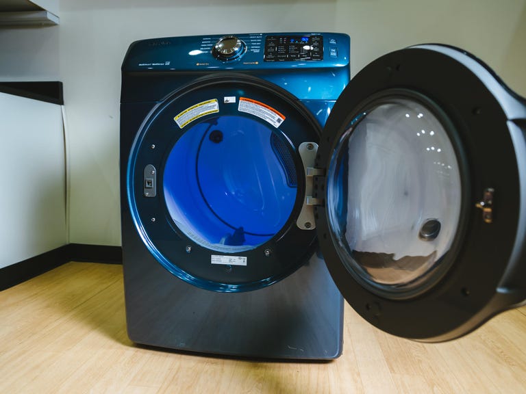 If you're in the market for a high-end, front-loading clothes dryer, the Samsung DV5500 might sound tempting. This $1,000 dryer powers through wet loads quickly. It also has plenty of special cycles and steam modes. And to match adventurous interior designs it comes in a distinctive azure blue.