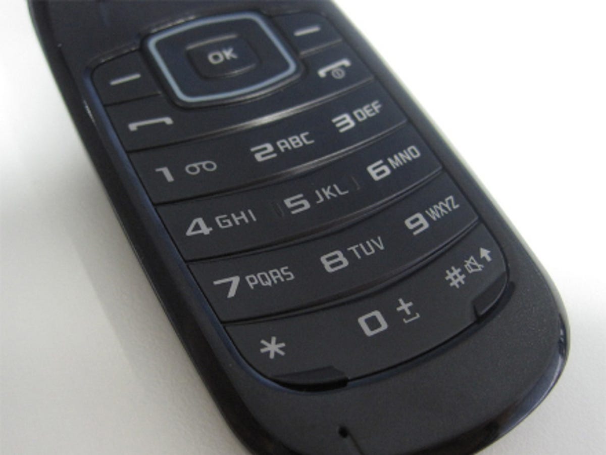 The candybar design and all-black finish of the E1170 have been replaced by a more compact appearance and a fetching two-tone colour scheme. The front of the phone is fairly featureless, save for the familiar Samsung logo. There's no secondary screen to speak of or any other external notification lights. This means you'll have to open up the phone to see who's calling or texting you.