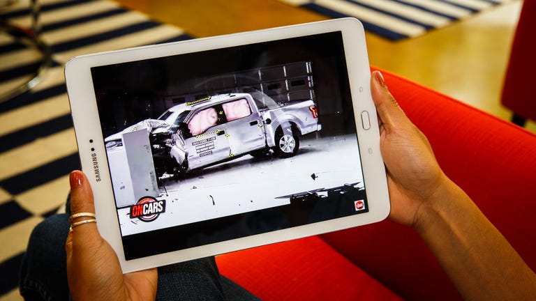 Speaking of the edges, though the corners are nicely rounded, the edges themselves are flat. This gives you a surface big enough to rest your fingers on the sides when using it. The dimensions of the 9.7-inch tablet aren't as one-hand-friendly as the 8-incher, but if you have big hands you might be able to make it work. Still, holding it in two hands was an easy feat thanks to its light weight. The plastic back on the tablet has a smooth matte finish. It felt fine on my fingertips, but I preferred the suedelike finish on the back of the Galaxy Tab S2 8.0 -- it felt more comfortable and luxe.