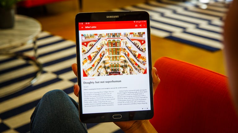 Like the Tab S, the new model packs a bunch of free goodies straight from Samsung, and most of them lend themselves to the new reading-friendly screen size. Included with your purchase of the Galaxy Tab S2 are free 6-month subscriptions to The Economist and The Guardian publications, as well as one for Pocket, an app that saves content for reading later. There's also a three-month subscription to Scribd, which is like Netflix for books, and free premium content on Stitchr, a podcast app. If you're into writing as much as you like reading, Samsung also throws in free downloads of the Hancom Office apps.