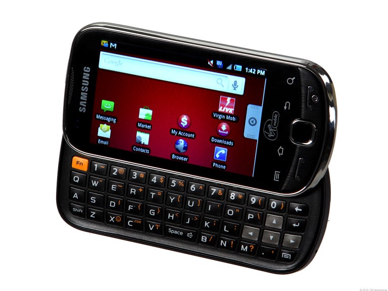 The slide-out QWERTY keyboard is a nice reveal. The buttons are smaller than on the slightly taller Samsung Transform, and angle in. Interestingly, the center buttons are flatter than those on the periphery, which are slightly domed for easier pressing. We liked the placement of the Function key, which was easily accessible. Both landscape and portrait modes give you access to the virtual QWERTY keyboard any time you'd rather keep your fingertips trained on the touch screen, though we found the smallish virtual keyboard less accurate to type on in portrait mode.