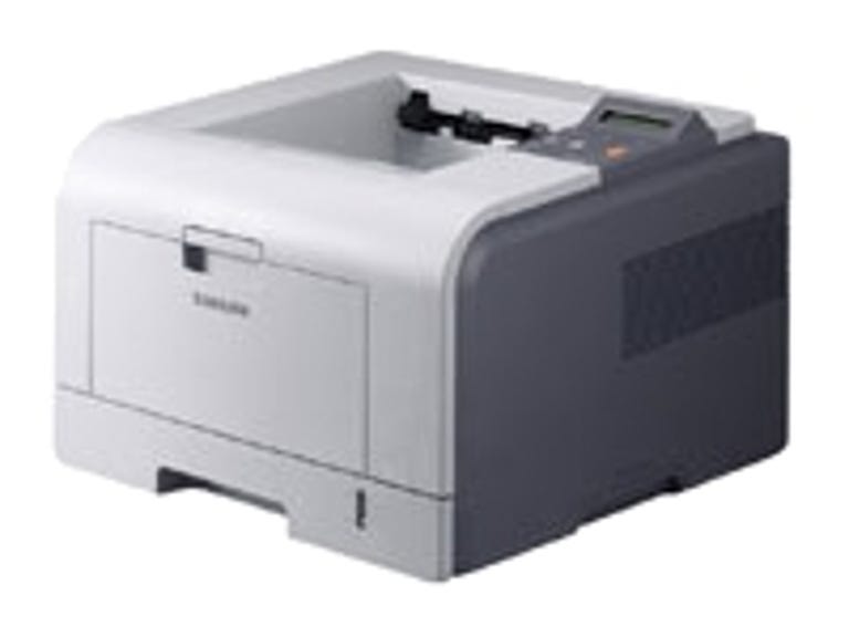 The entire front panel of the printer swings down to reveal the single black toner cartridge. Replacing it is simply a matter of pulling out the used cartridge by its handle and inserting a new one. The toner save button on the control panel allows you to reduce the amount of toner used on each page, saving you money; obviously, less toner also means lower print quality. The standard toner cartridge prints about 4,000 pages, while the high-yield cartridge prints twice that. Samsung estimates that it costs a mere 1.5 cents to print a page of black text. Using the toner-save feature, the per-page cost drops to an impressively low 1.07 cents per page. The Samsung ML-3051N fell short of Samsung's claim of 30 pages per minute (ppm), but its speed still impressed us. It printed black text at a rate of 19.22ppm and grayscale graphics at 18.16ppm, outpacing the more expensive Oki C3400n and about equal with the more expensive Lexmark C500n.