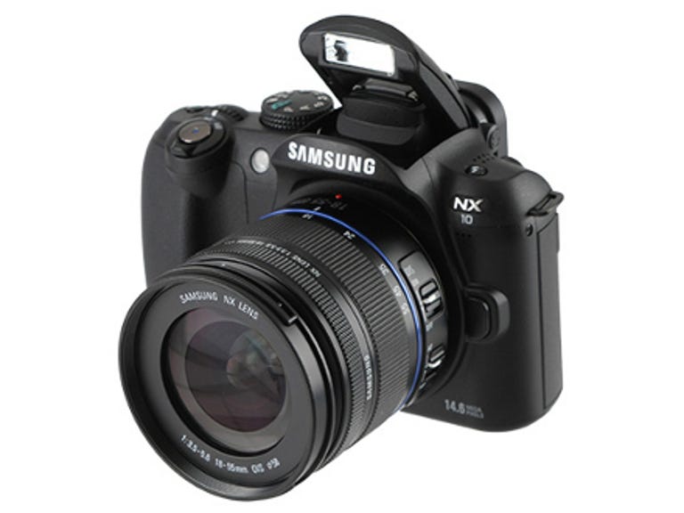The dimensions are a surprise, too. The sensor might be twice the size of those in Micro Four Thirds cameras from Olympus and Panasonic, but the NX10 itself isn't. In fact, if you put the NX10 side by side with a Panasonic Lumix DMC-G1, it actually looks slightly slimmer.