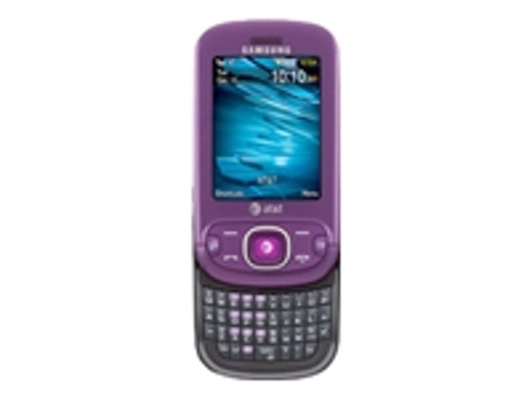 The Strive, aka the SGH-A867, fits the definition of a messaging phone. Much like the Samsung Flight it has a chunky (4.17 inches long by 2.15 inches wide by 0.58 inch deep) slider design. Common it may be, but we still think it's a relatively attractive device and we're pleased that it makes good use of its real estate. The Strive has a plastic shell and it almost feels a little too light in the hand (3.99 ounces), but the slider mechanism clicks into place on either end. You can get the Strive in black or purple; the features are the same on both models.