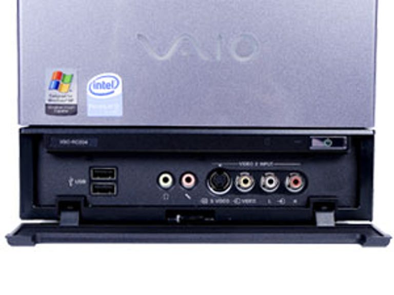 Sony has included a Media Center remote in the RC204 package, as well as a stylish RF mouse and keyboard combination. The latter has an integrated mouse touchpad, giving you full control of the PC from your armchair. Because it's an RF (Radio Frequency) model, it doesn't require direct line of sight to an infrared receiver -- you can use it while hiding behind a sofa if you're that way inclined, or perhaps more practically you can hide the PC in a cabinet so it doesn't spoil your chic minimalist living room.