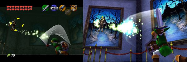 Some people dislike the use of mini-games, thinking that they serve only to pad out a game artificially. This is a valid argument when the mini-games are poorly executed, but Ocarina of Time is not one of these games. In between beating dungeons and trying to rescue the princess, you can play a number of different games, usually involving aiming weapons at a target, for prizes that are definitely worth your while: expanded item slots and life capacity, for the most part.