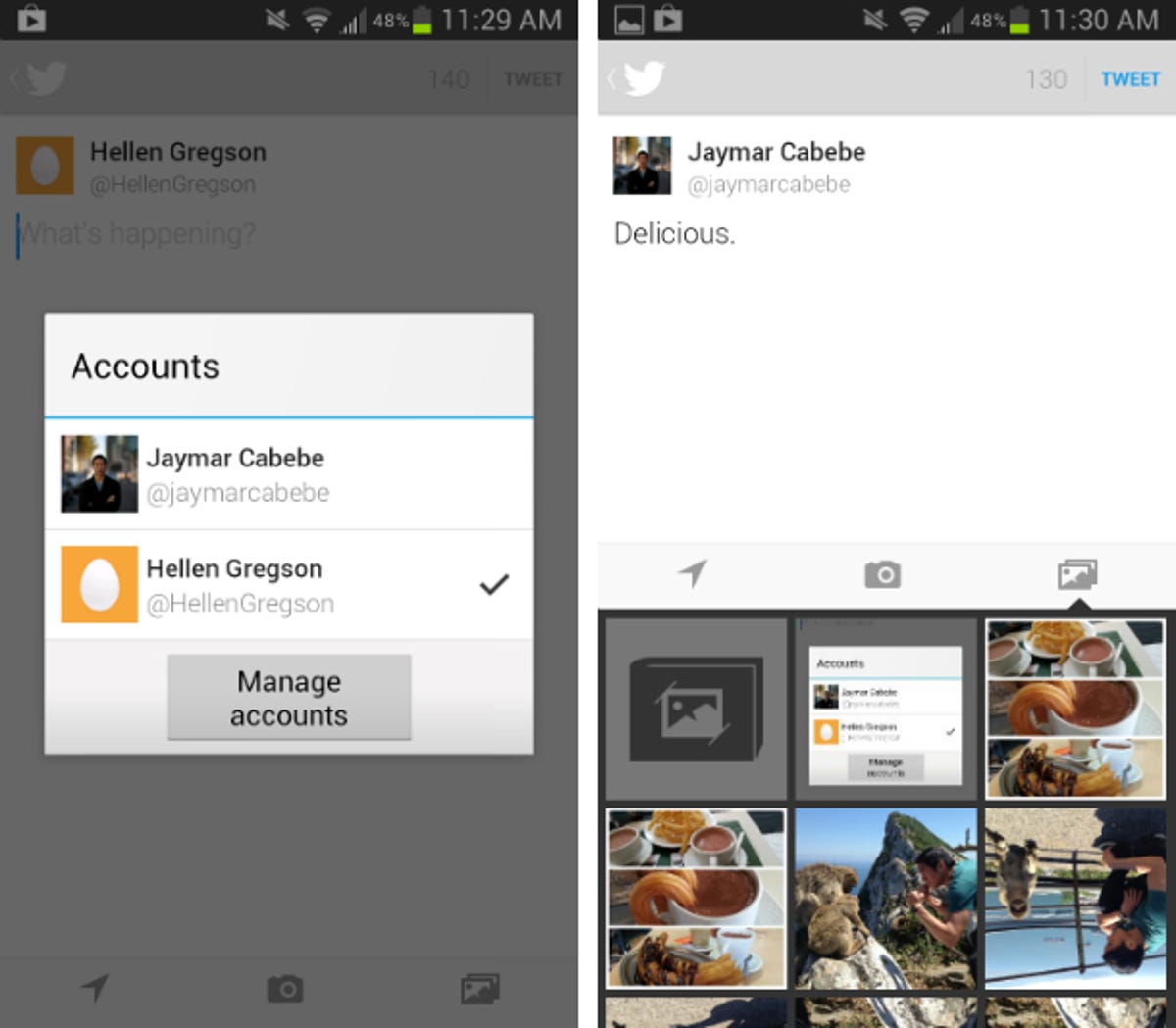 Sending tweets from your mobile device is even easier than doing so on the Web, thanks to the text bar at the bottom of the screen that is always accessible, no matter where you are in the app that asks "What's happening?" Autocomplete makes mentioning friends a snap, and you can easily attach photos and location stamps to your tweets. In fact, with the newest features added to the app, the photo attachment button pulls up your device's Gallery right within the Compose interface, making the process faster than ever. You can even switch between multiple accounts right from the Compose screen.
