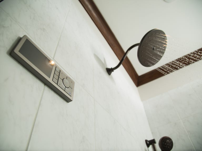 We have the U by Moen Smart Shower set up in a freshly renovated bathroom in the CNET Smart Home -- complete with one large main showerhead, a handheld showerhead, and four body sprays built into the wall. The temperature control is accurate and the app is intuitive and surprisingly useful. Especially for a guy accustomed to a simple setup in a bachelor pad, it's -- in a word -- luxurious.