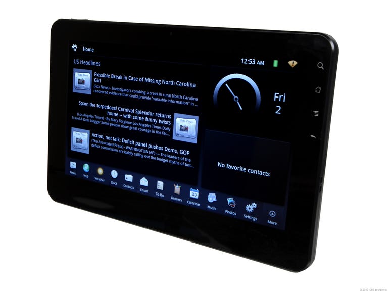 The most important design decision ViewSonic made on the G Tablet revolves around the onscreen user interface. The expected Android customizable desktop has been replaced with a large dashboard of utilities, including weather, news, notes, clock, contacts, and calendar. You can customize this view to some extent, swapping around the different preinstalled modules--but it's nowhere close to the customized nature of the Android desktop we've come to know. Granted, some of that custom application-organization functionality is still available in the toolbar and app drawer running across the bottom, but fundamentally in its interface metaphor the G Tablet is closer to the Sony Dash than, say, the HTC Evo 4G.