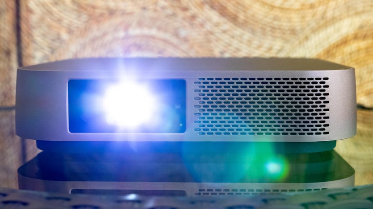 The ViewSonic M2 is tiny for a projector -- about the size and shape of a small cake. Copper-colored flan, maybe. Aside from the tote-friendly size, a couple of unique features set it apart from the pack. Built-in streaming lets it project your favorite Netflix and Amazon Prime shows just about anywhere. And it can run off an optional battery, providing a big picture on the go.