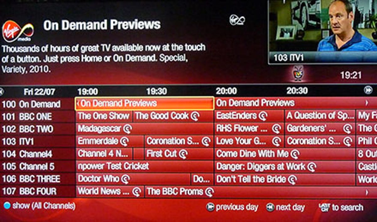 The ability to stream TV from the past week or so from the BBC, ITV, Channel 4 and Channel 5 -- but not Sky -- without too much fuss has long been one of the best aspects of the Virgin Media service, but, on the old Virgin V+ boxes, it was always a pain to find anything. Although some effort has been made to sort things out, unfortunately, the electronic programme guide is still something of a dog's dinner on the TiVo box.