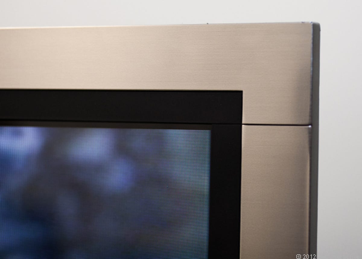 The Vizio XVT3D580CM is framed in a thick slab of aluminum in a world where televisions such as the impossibly tiny-bezeled LG LM9600 should be watched and not seen. It's large for a 58-inch diagonal set, and not exactly subtle-looking. It shares some similarities with LG's own G2 in the finish, but where the LG looks gaudy, the Vizio looks reserved with its matte-black liner. The aluminum continues to the stand, which unfortunately doesn't swivel.