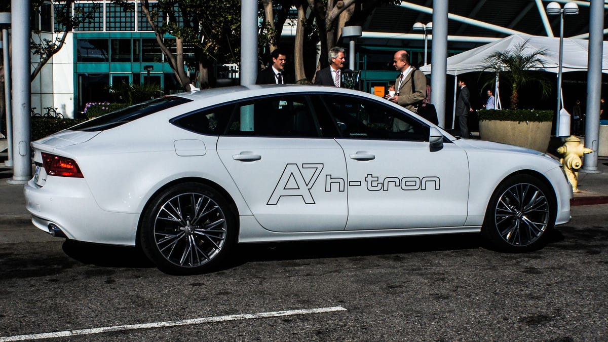 This was the Audi A7 h-tron, a new development vehicle that's letting Audi explore the possibility of a long-range, zero-emission vehicle. I couldn't help but think the car was designed to compete with the Tesla Model S .