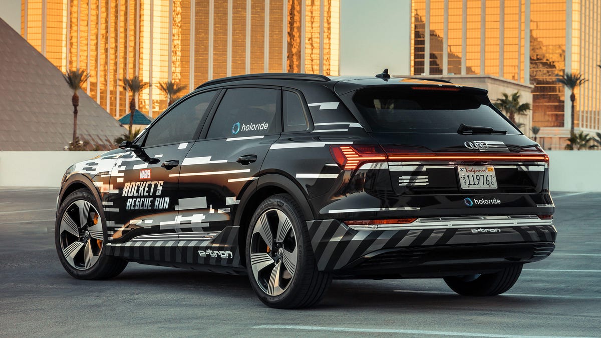 A few years ago I drove a few laps around SpeedVegas, a 1.5-mile race track just south of the Las Vegas Strip. On Sunday night, I lapped SpeedVegas again, but this time I was fully immersed in a space battle alongside Rocket -- you know, the raccoon from Guardians of The Galaxy -- and Iron Man. As I sat in the back seat of an Audi E-Tron crossover, wearing an Oculus Rift virtual reality headset, Rocket encouraged me to "shoot" asteroids and rival drones as I "flew" through an outer-space environment.