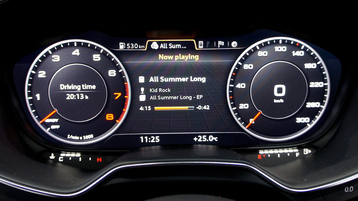 One of the biggest changes for this new interface has Audi dropping physical gauges in favor of an LCD panel in front of the driver. This panel shows virtual gauges and infotainment system screens. The TT will represent the first production car in which Audi has gone to virtual gauges. The driver can choose to show large or small gauges at the touch of a button.