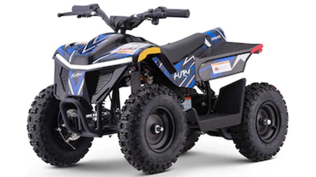 The Droyd Fury is an ATV designed for kids aged 6 and up but rugged enough to carry an adult. It is compact (40 x 24 x 24 inches), making it easy to fit through doorways or into the back of our SUV.Â