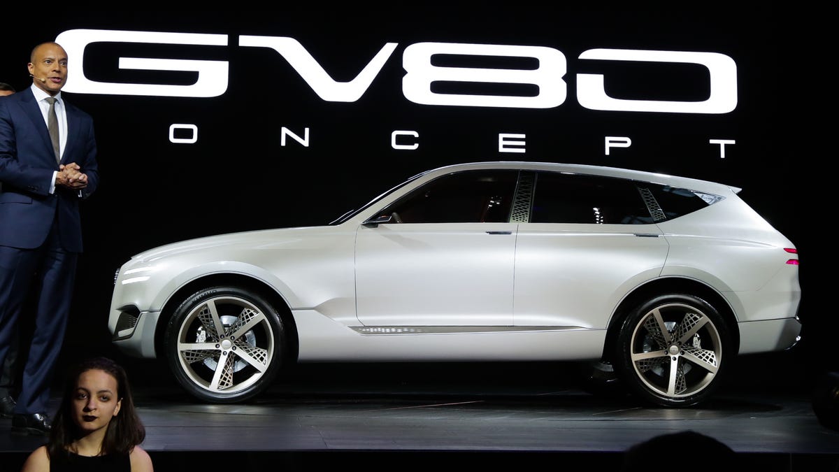 The GV80 is mostly a design study that explores what a future SUV from the Genesis brand would look like. The concept stretches elements from the Genesis luxury sedans, such as the shield shape of the grille, across and around the SUV proportions.