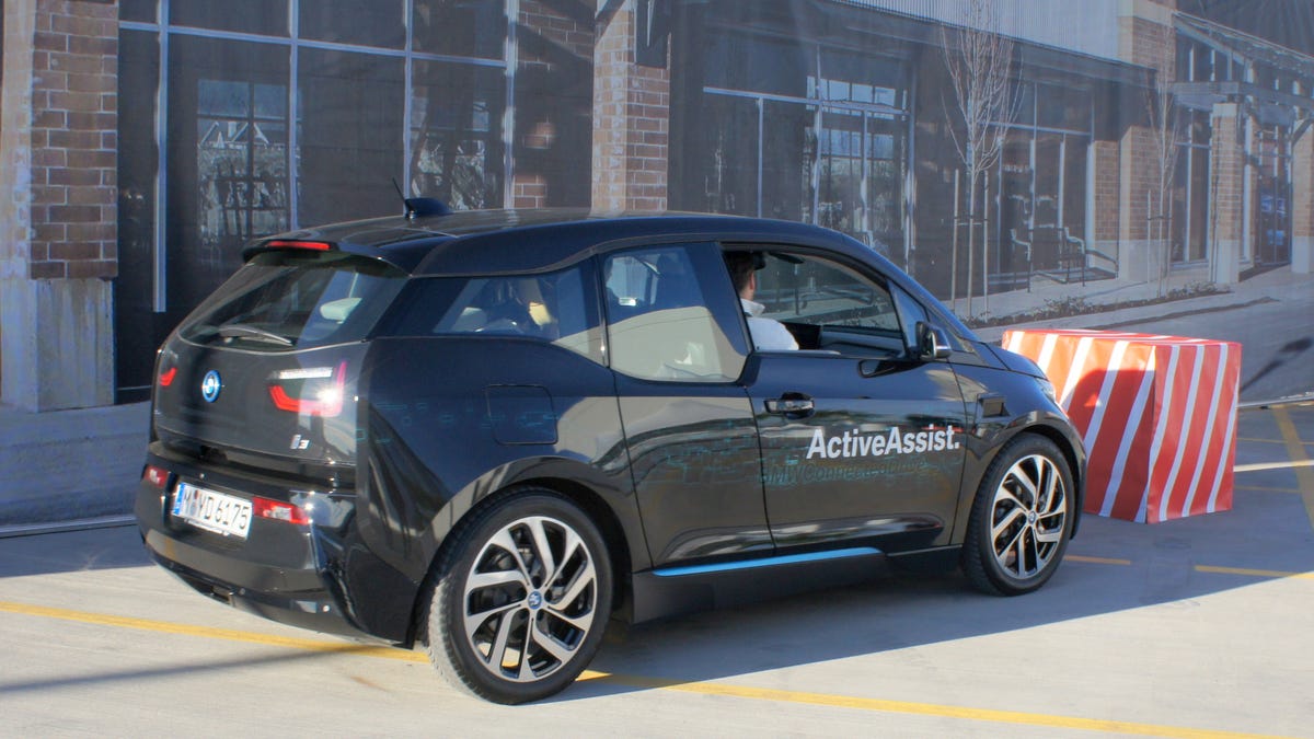 LAS VEGAS -- On the top level of a parking garage during CES 2015, BMW invited me to take the wheel of its i3 electric car, modified with its experimental ActiveAssist technology. Through a narrow course of soft barriers I followed a BMW minder's instructions and purposefully steered into the obstacles.