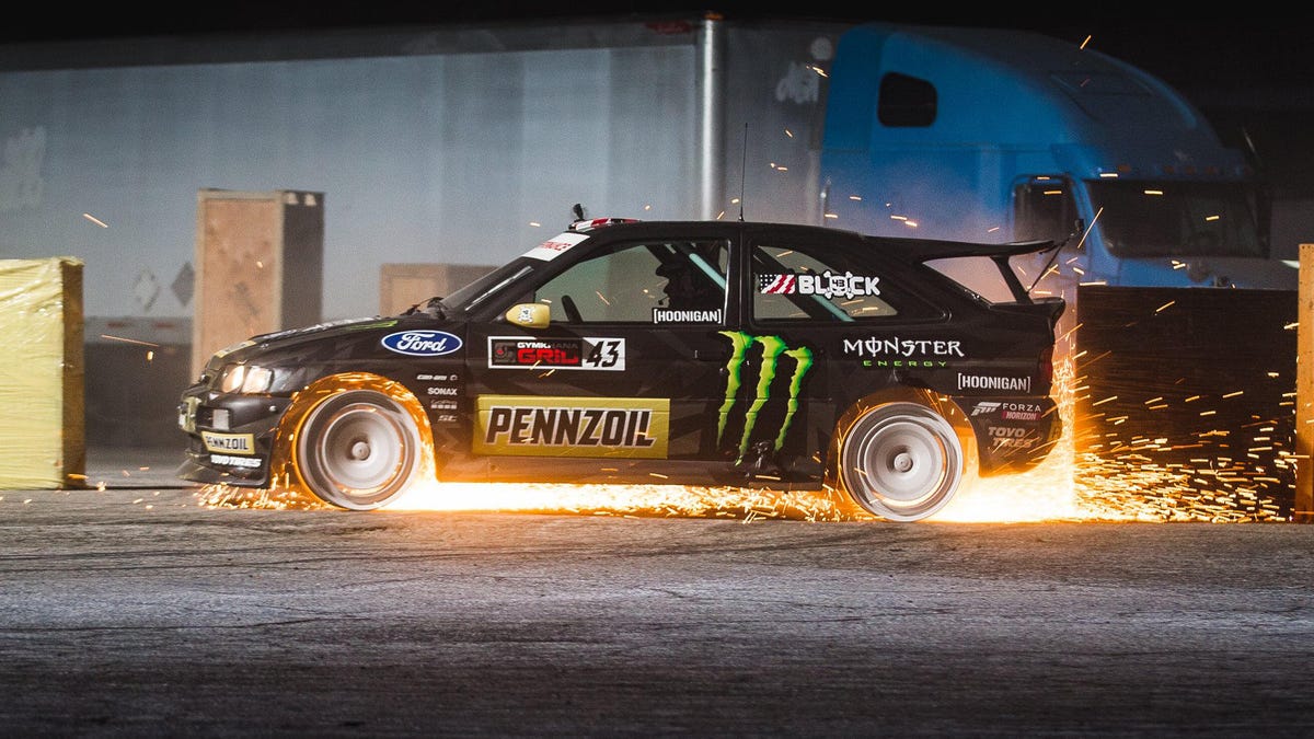 Block starts Gymkhana 10 with a brief introduction of his vehicles, a nutso stable that includes a 1977 Ford F-150 with a 914-horsepower EcoBoost V6. He also slides into the current World Rally Championship-spec Ford Fiesta WRC, his Ford Mustang RTR Hoonicorn V2 and others.