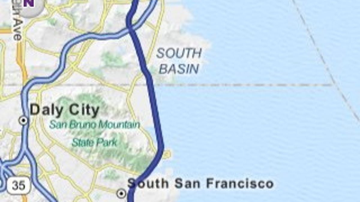 MapQuest automatically recalculated when I got off of its suggested route, but became confused when I was on an elevated freeway, suddenly calculating a route as if I was on the street below. The iPhone's GPS might be partly to blame for that error, but the app should have made the assumption that I was most likely still on the freeway, since there had been no exits for the road below.