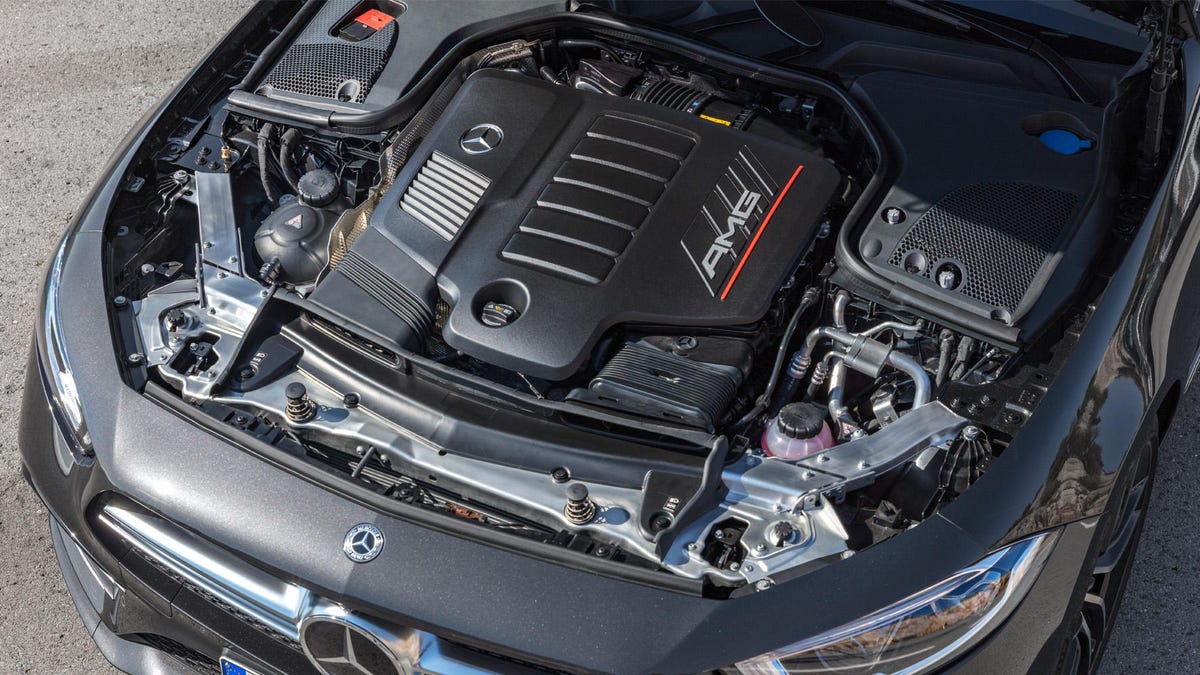 Instead of using a traditional starter and alternator, Mercedes-AMG replaced both items with a single electric motor, which it calls EQ Boost. Part of a 48-volt mild hybrid system, EQ Boost can provide an extra 21 horsepower and 184 pound-feet of torque to the wheels. It also provides for stop-start functionality and a "gliding" mode that disconnects the engine from the transmission when coasting. An electric compressor can help build turbo boost, too, providing for minimal turbo lag during spirited driving.