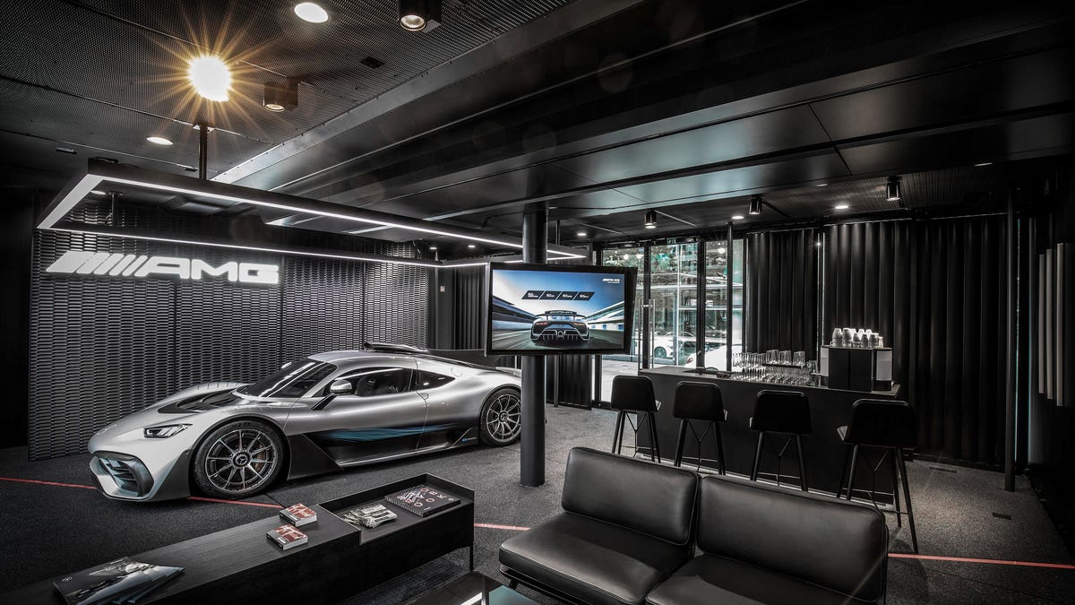 Customers will be able to get a closer look at the Mercedes-AMG One by way of a new mobile showroom the company calls "The Future of Driving Performance." It's a custom-built semi-truck trailer with extendable sides that expand to include a vehicle display, coffee bar and lounge area. Folks can even sit in the One's cockpit, and various displays let customers see the car's different interior material and color choices. The mobile showroom is currently housed at Mercedes' Munich location.