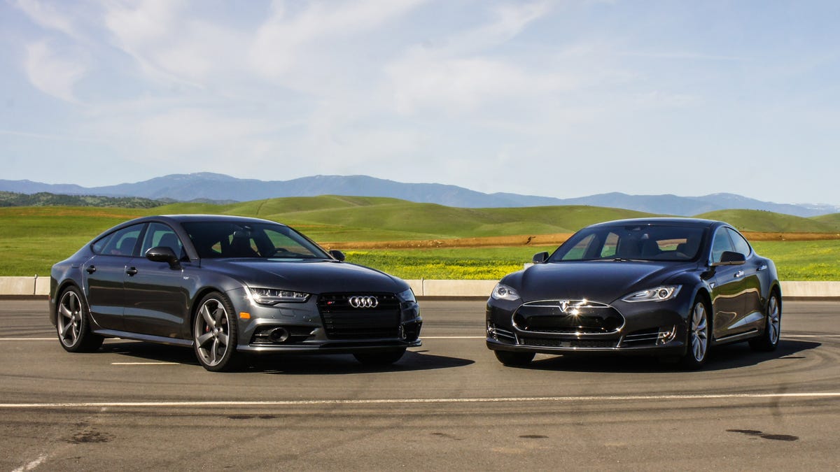 The Audi has the edge in horsepower, but the Tesla has more torque, and both have all-wheel drive.